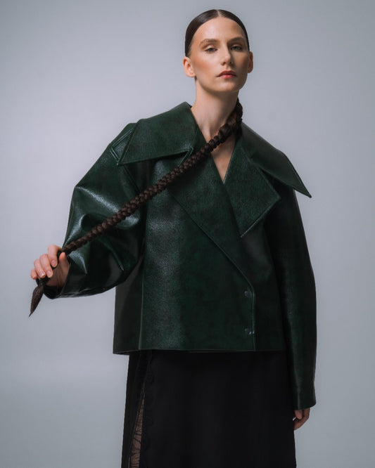 GRAPHIC EMERALD ECO-LEATHER JACKET